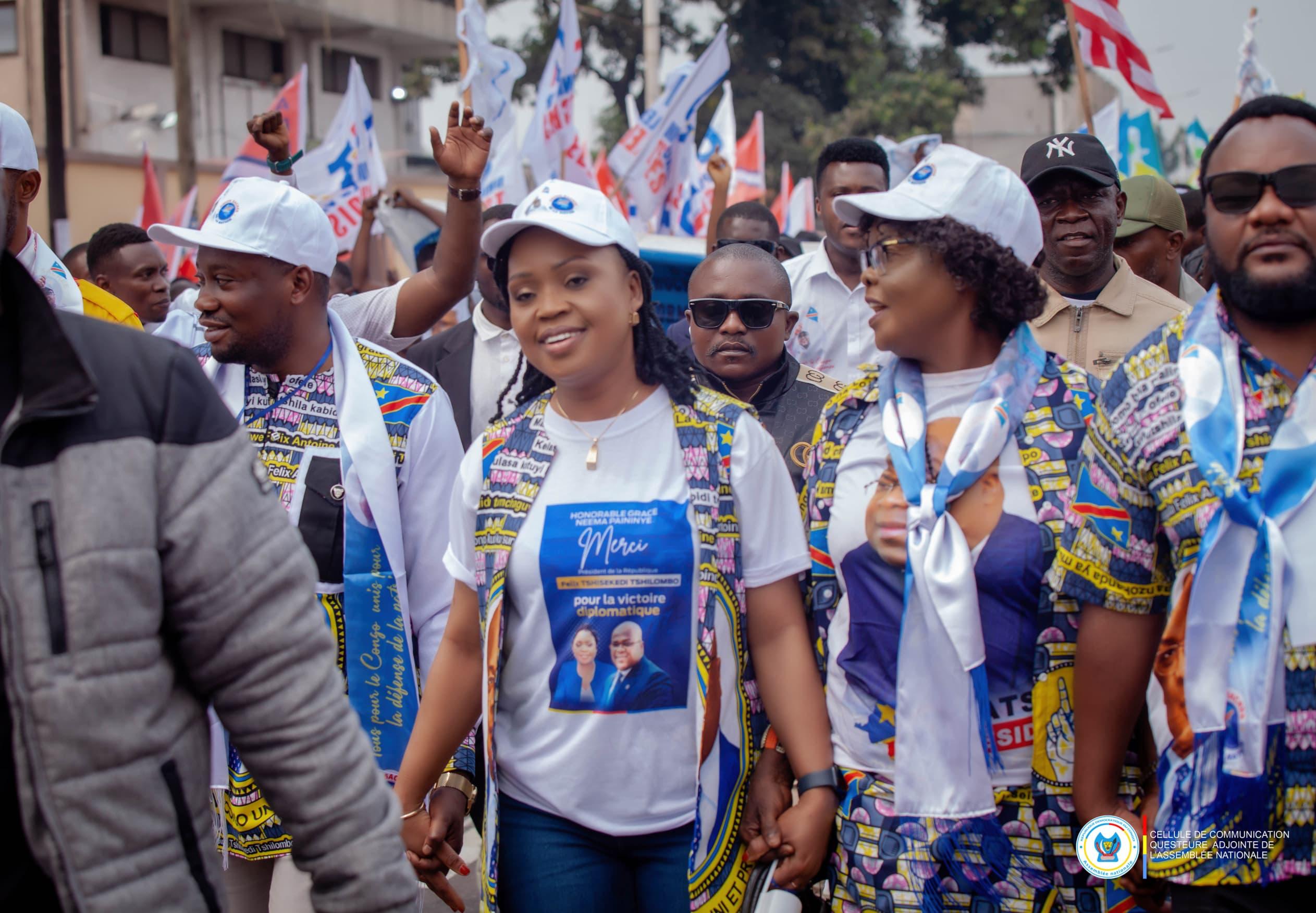 Accord de paix RDC-Rwanda: Grâce Neema Paininye était en marche de soutien avec l’Union Sacrée de la Nation ce mardi