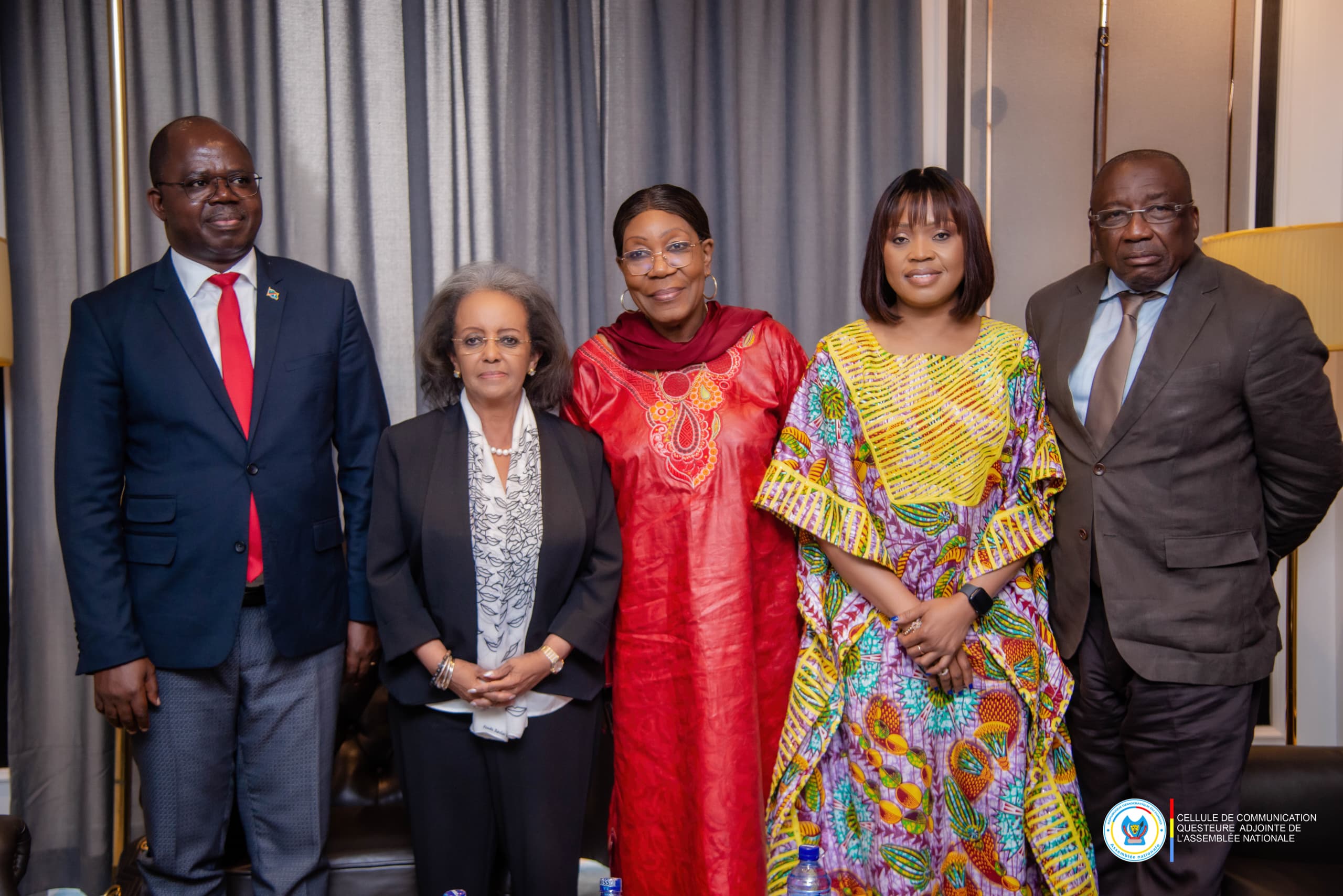 Constituée du Premier Vice-Président, Isaac Jean-Claude Tshilumbayi, du Rapporteur, Jacques Djoli Eseng’ekeli et de la Questeure Adjointe, Grâce Neema Paininye, la délégation du bureau de l’Assemblée Nationale a eu un échange fructueux à titre informatif avec l’équipe de facilitation de l’Union Africaine, composée de son côté de Sahle-Work Zewde et Catherine Samba Panza, respectivement anciennes Présidentes de l’Éthiopie et de la République Centrafricaine. En tant que Représentation nationale, il était impérieux que la deuxième institution du pays, à travers son bureau, puisse échanger fructueusement avec cette équipe afin de donner sa version des faits sur la crise qui secoue les pays et surtout étudier les possibilités dans la perspective d’en sortir définitivement. C’est ce qu’a fait savoir d’ailleurs le professeur Isaac Jean-Claude Tshilumbayi à la sortie de cet entretien: